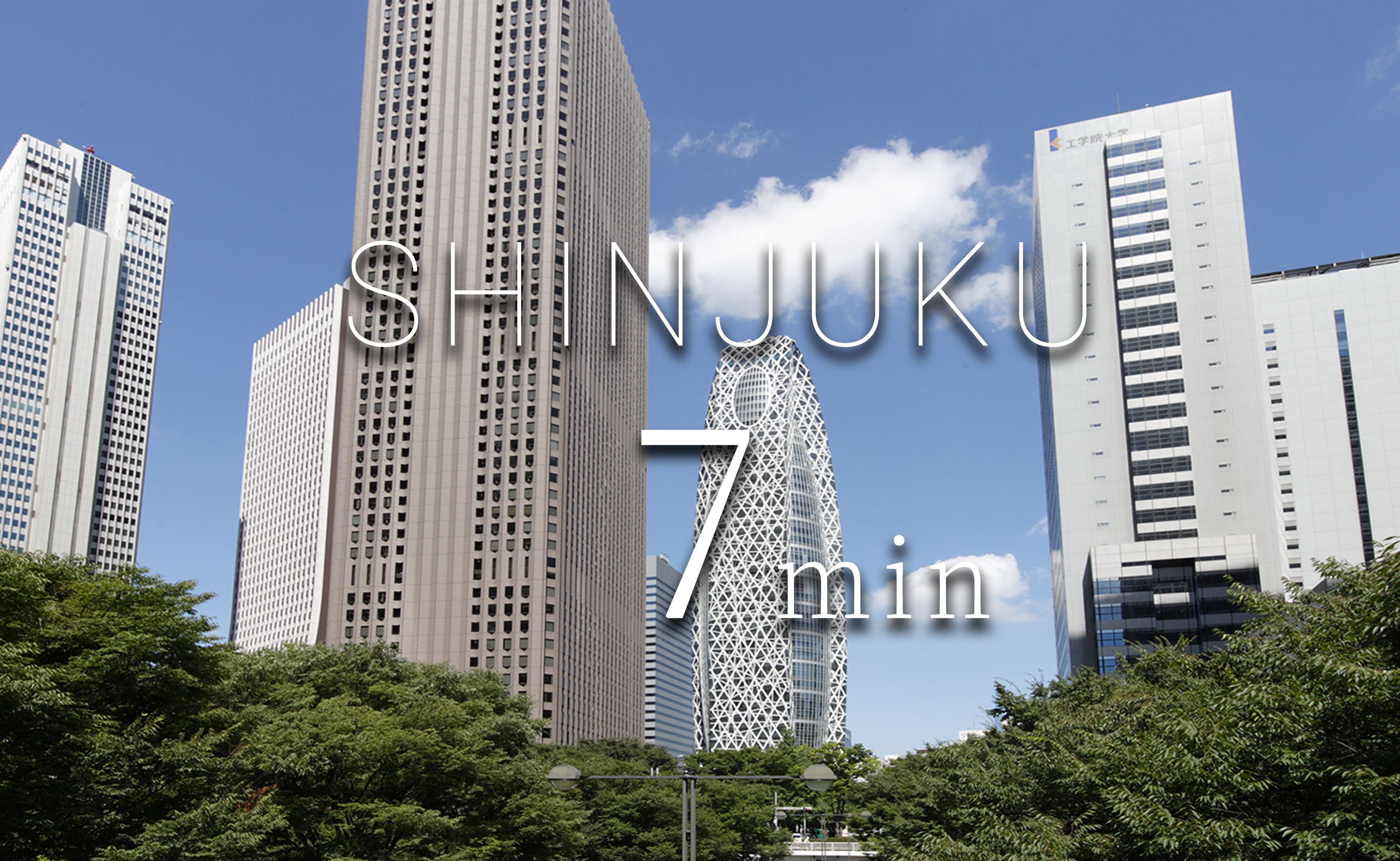 | 「渋谷」駅へ直通……… 2分 (1分) | 「新宿」駅へ直通……… 7分 (6分) |
