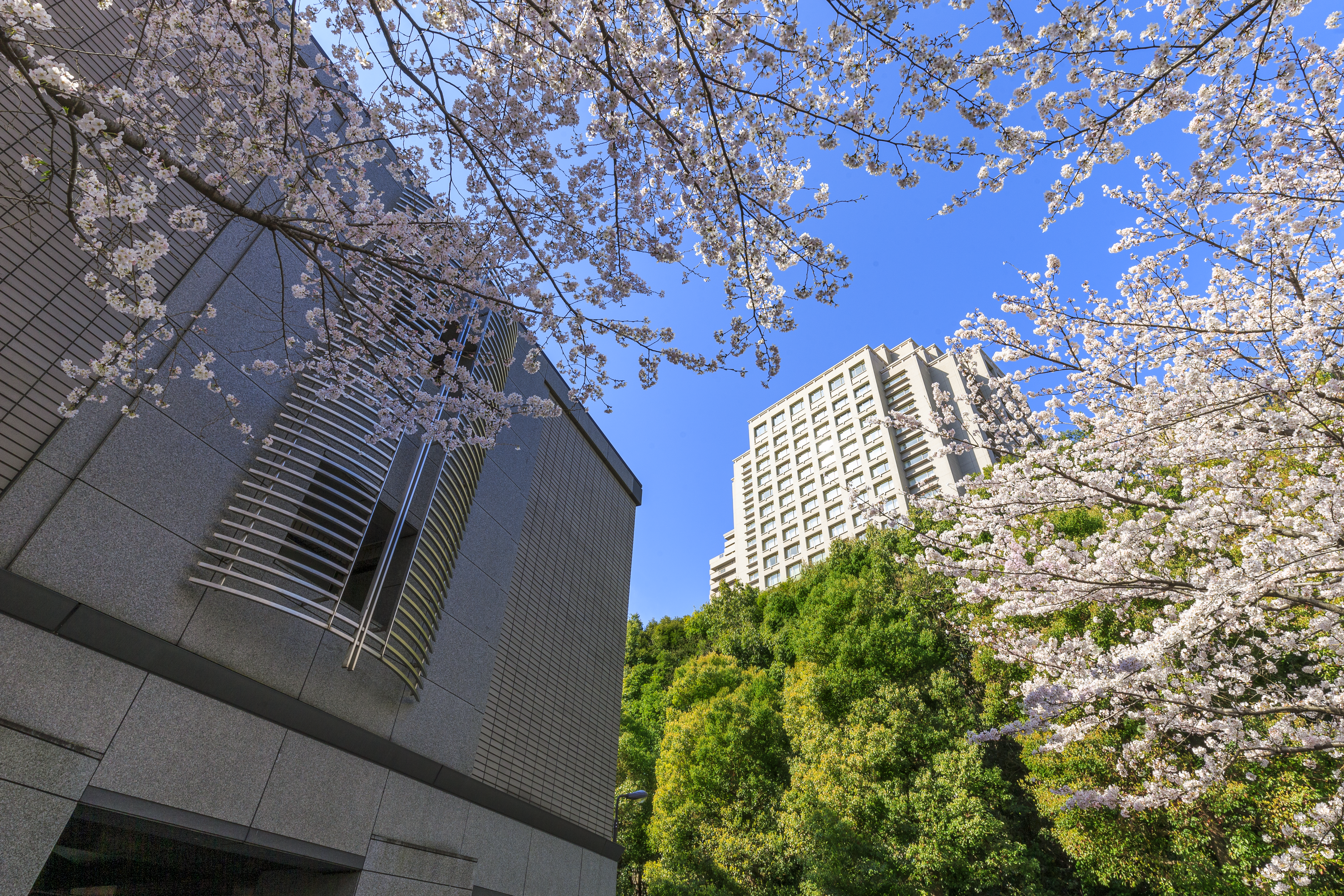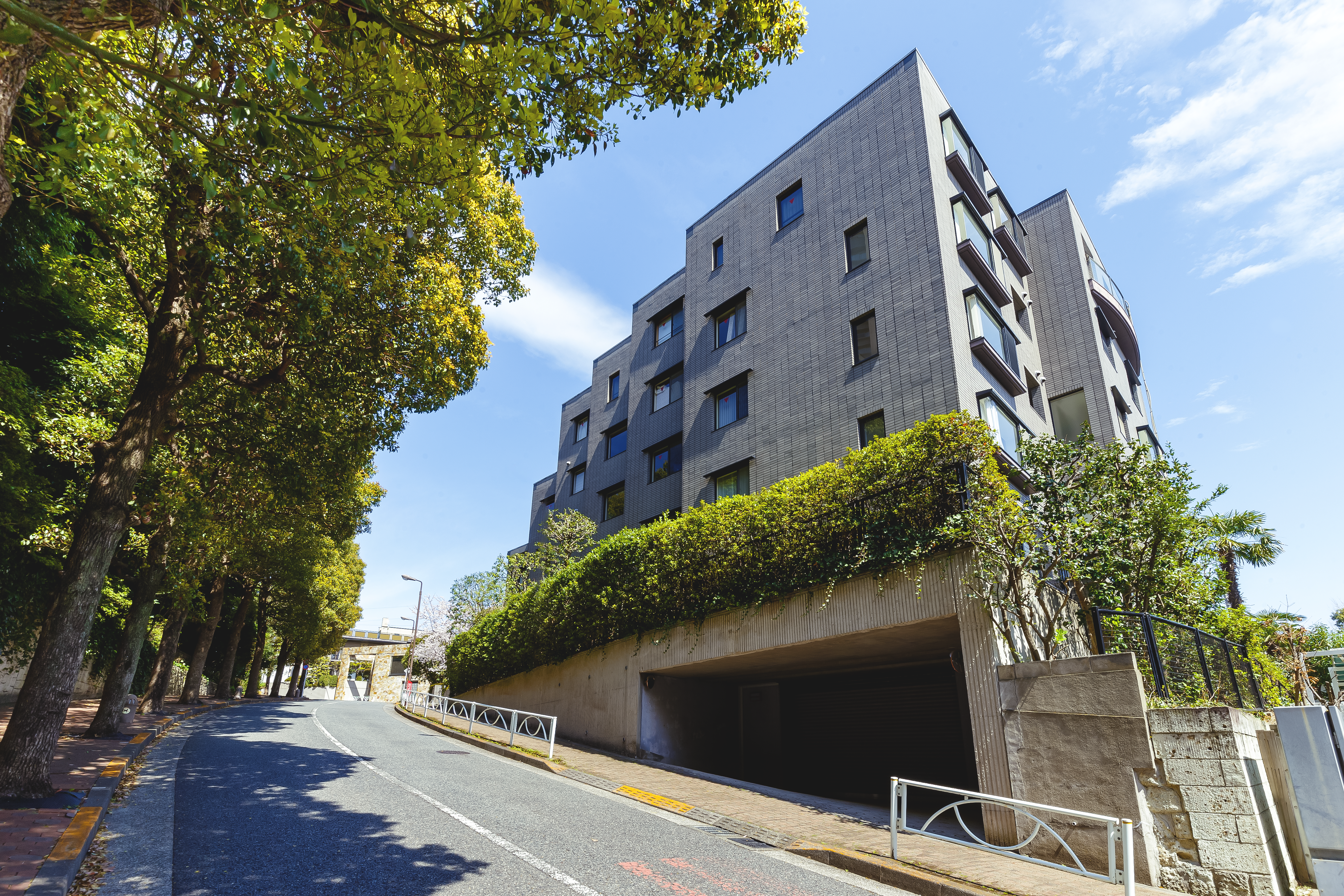 周辺の高級住宅街にふさわしい丘上の瀟洒な5階建て。
