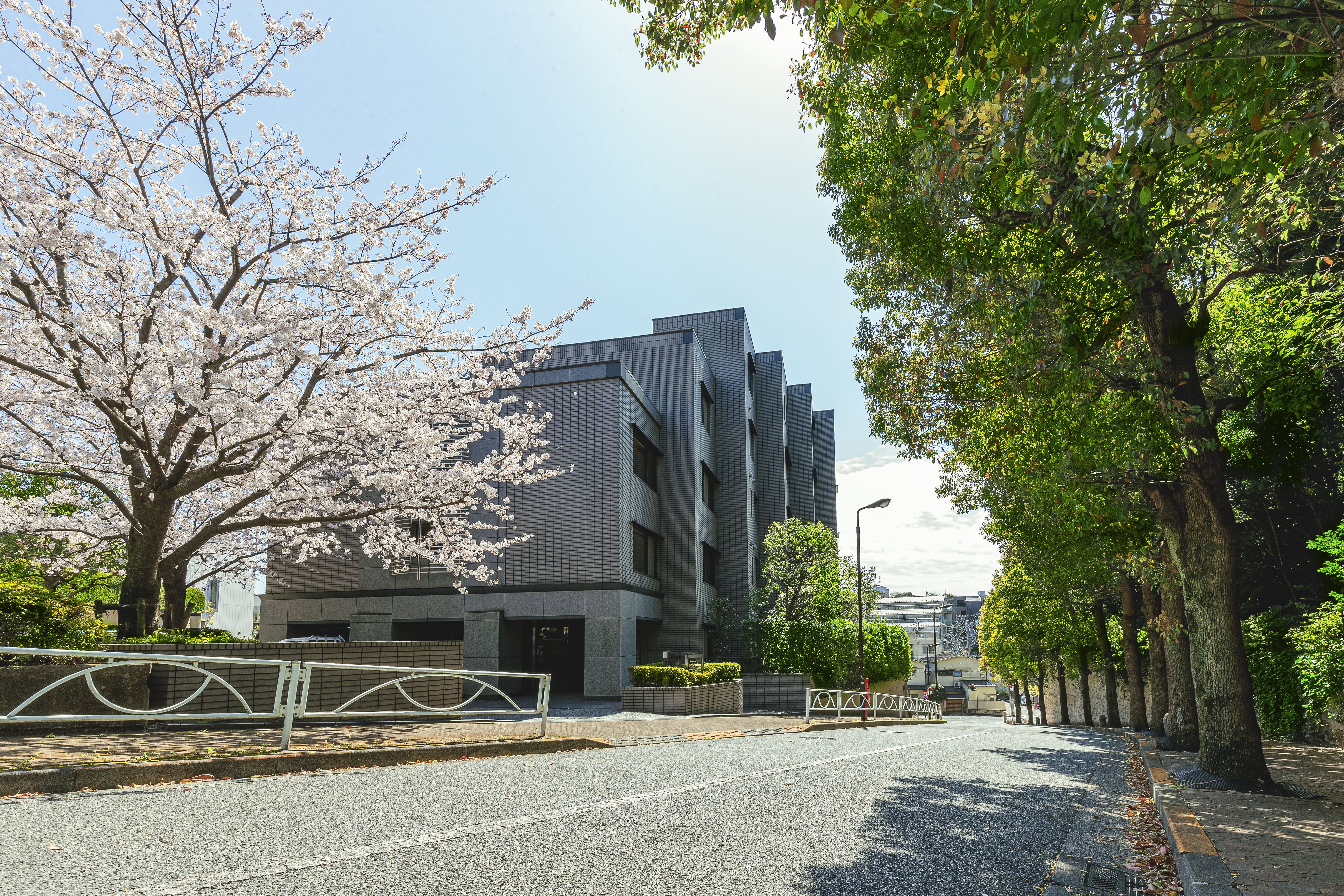 常緑樹の深い緑も豊かな静謐なる街並み。