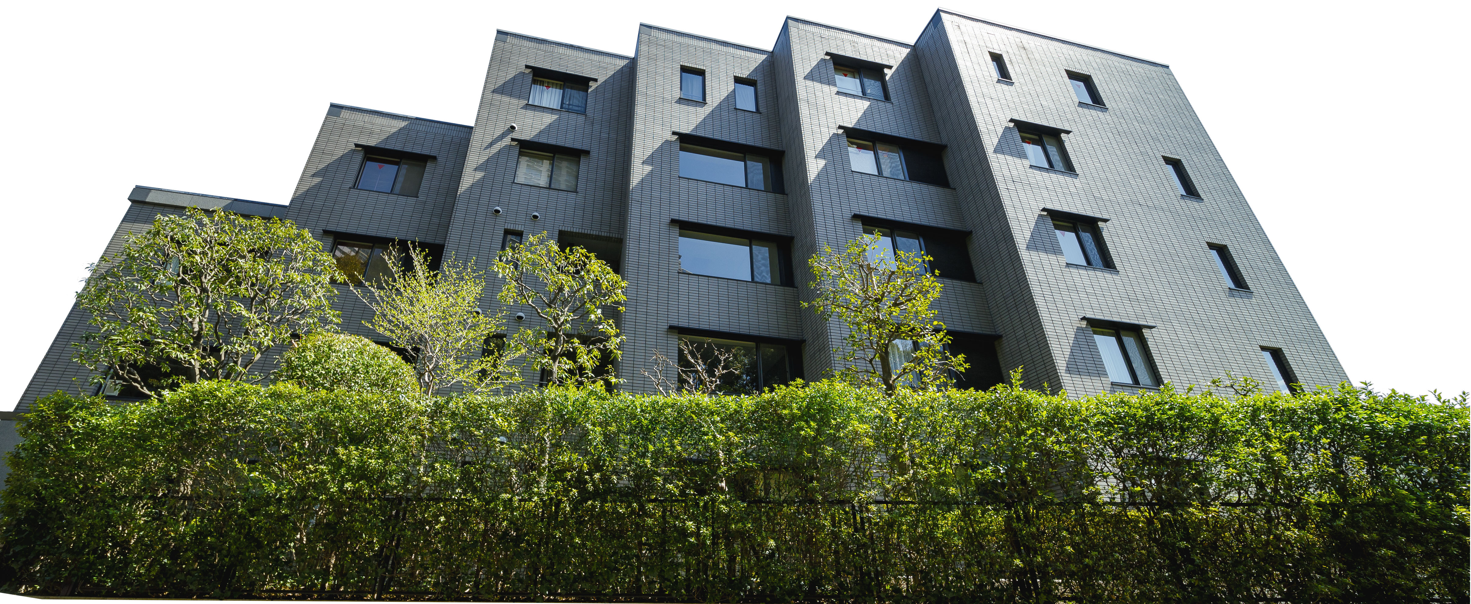 バルコニーの目立たない高級感にあふれる雁行フォルム。