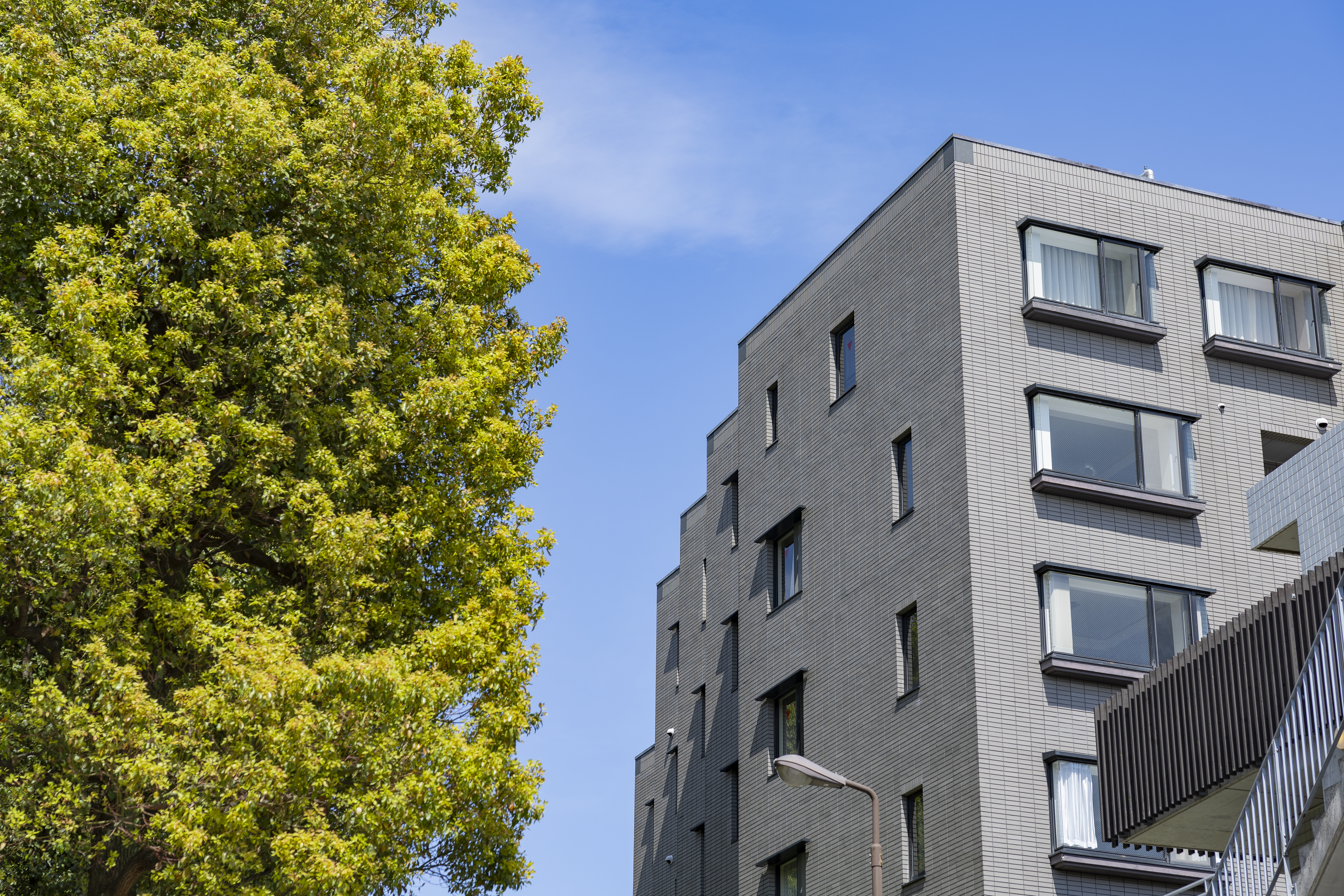 雁行した建築フォルムは、大きな特徴でもあると同時に、住戸一邸一邸のプライバシーを確保することも実現しています。